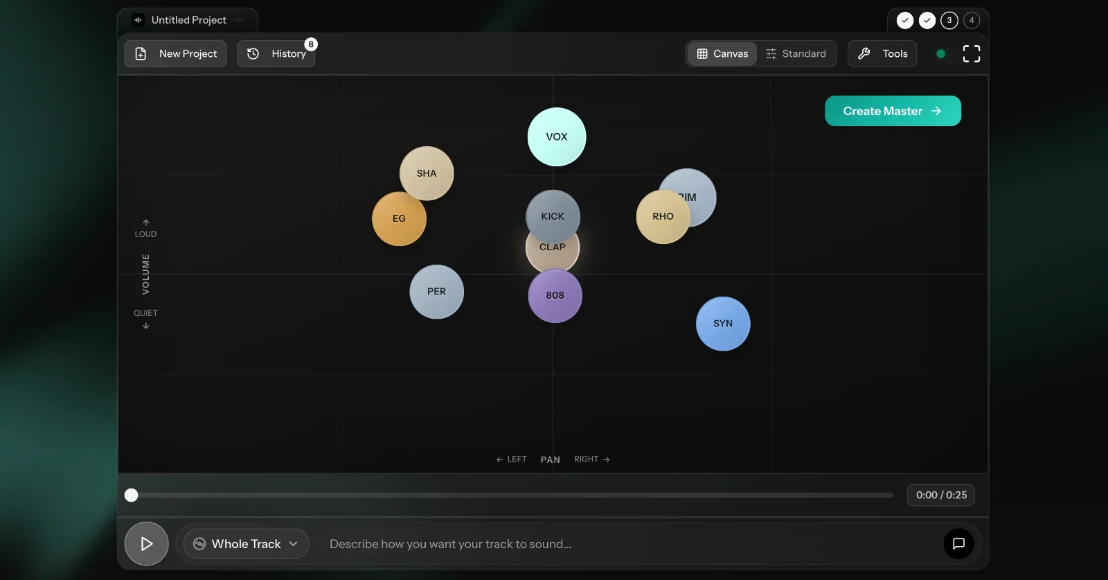 A brand-new spatial mixing interface that helps you visualize the balance of your mix. This is a first version and works best with a smaller number of stems for now. We would love to hear more of your ideas on how to improve it.