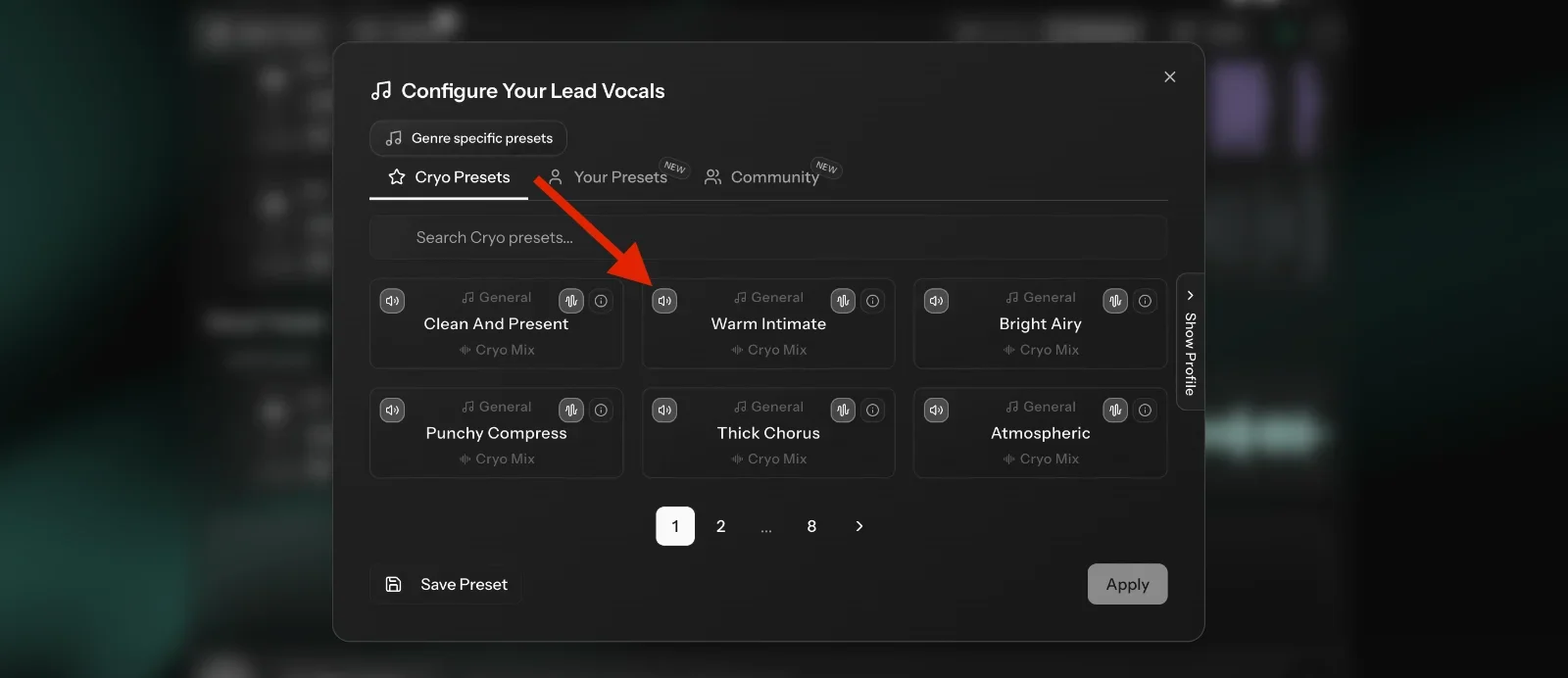 "Can I preview what this preset does without applying it every time?" Starting now, you can preview default Vocal Presets using one of our example files to hear exactly what the preset does. Coming soon: before-and-after examples, previews for all instrument categories, and the ability to preview presets directly on your uploaded files.
